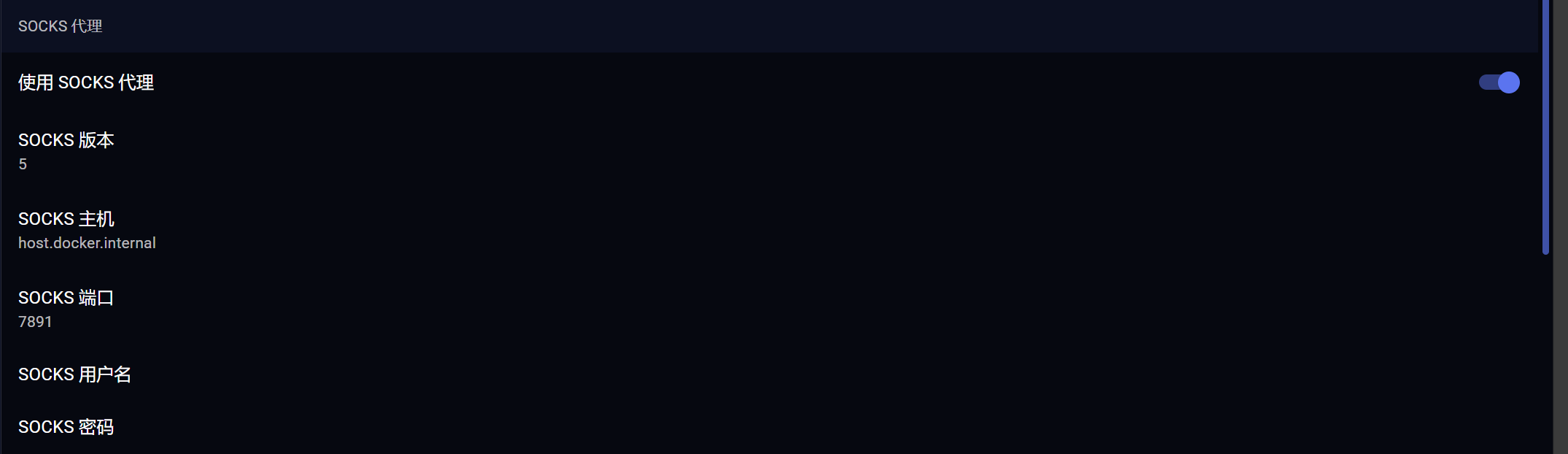 host.docker.internal 是docker容器访问宿主机的ip,端口数自行查看clash配置(通常为7890或7891,7892)